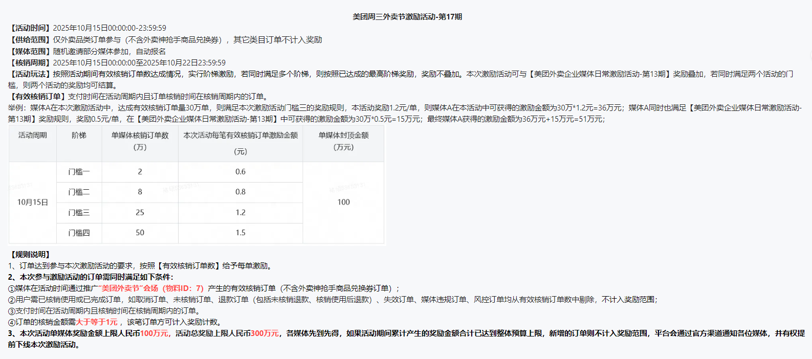 1.美团外卖节会场有效核销订单金额≥1元计入激励;