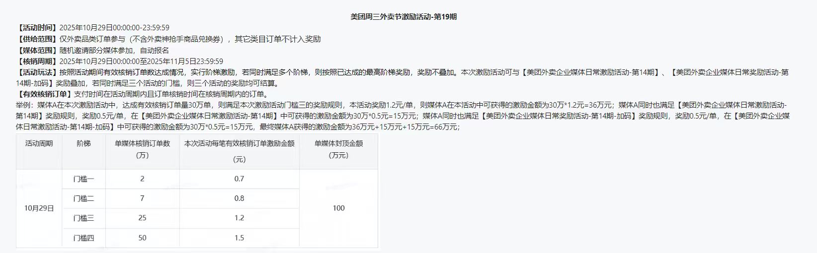 1.美团外卖节会场有效核销订单金额≥1元计入激励;