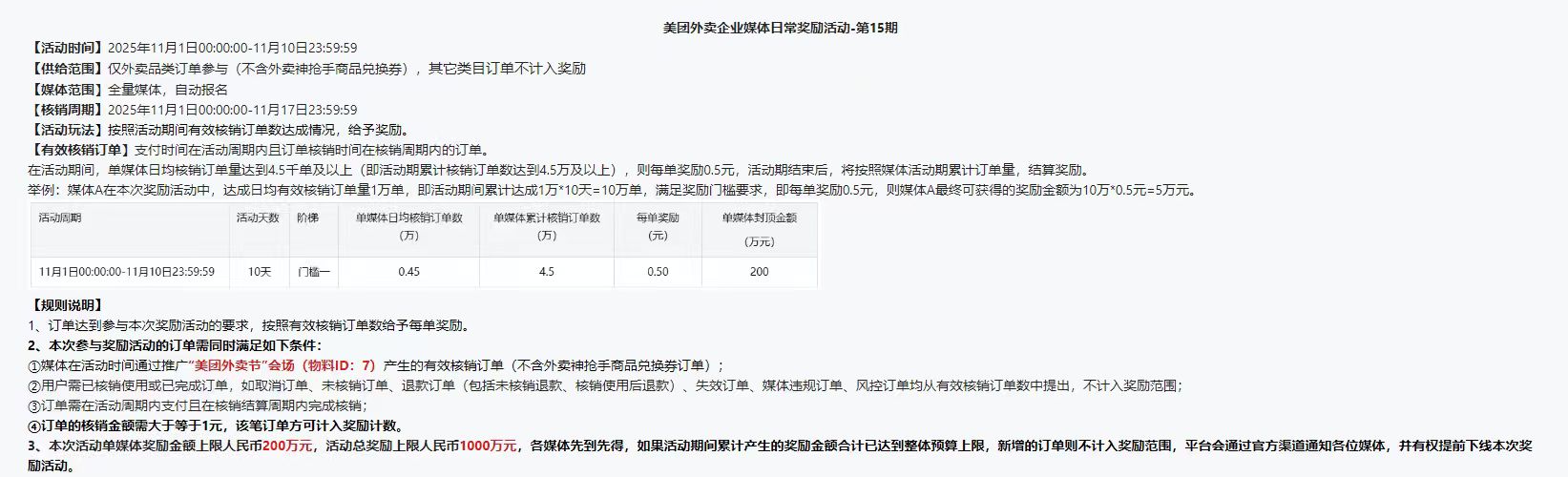 1.美团外卖节会场有效核销订单金额≥1元计入激励;