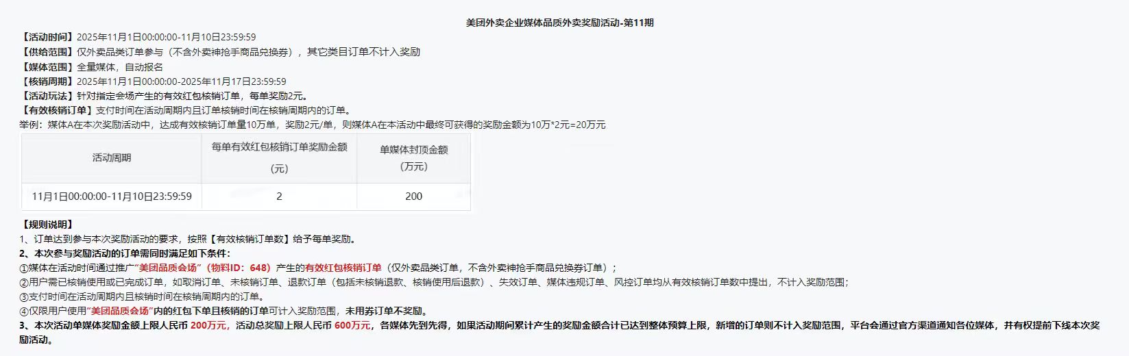 2、仅限用户使用“美团品质会场”内的红包下单且核销的订单可计入激励范围,未用券订单不激励。