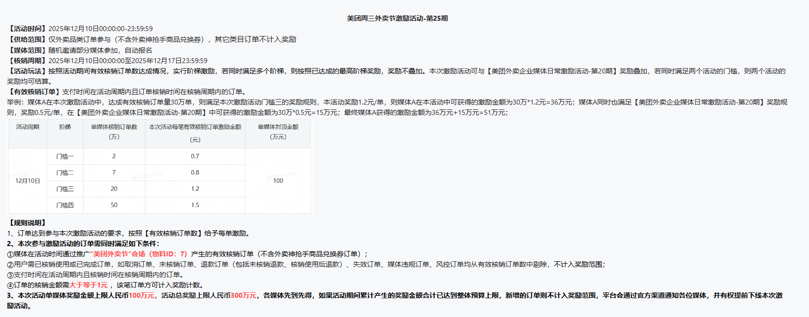 1.美团外卖节会场有效核销订单金额≥1元计入激励;