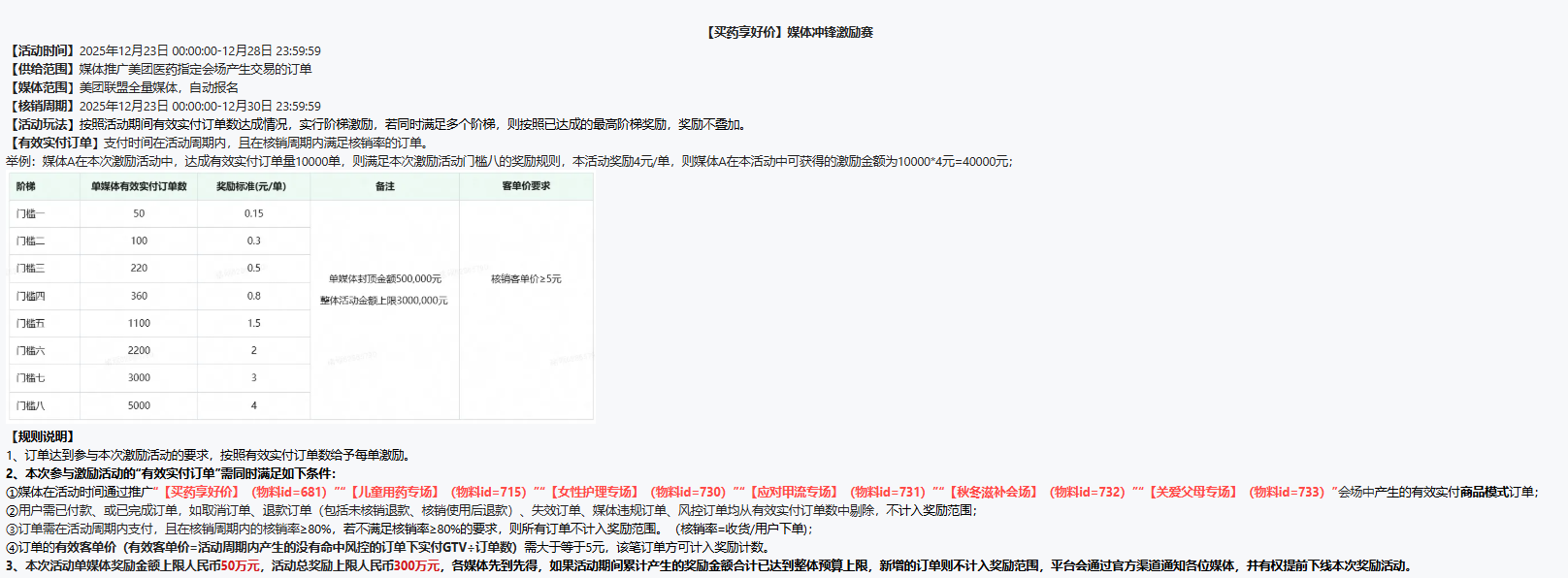 1.订单的有效客单价(有效客单价=活动周期内产生的没有命中风控的订单下实付GTV+订单数)需大于等于5元,该笔订单方可计入奖励计数;