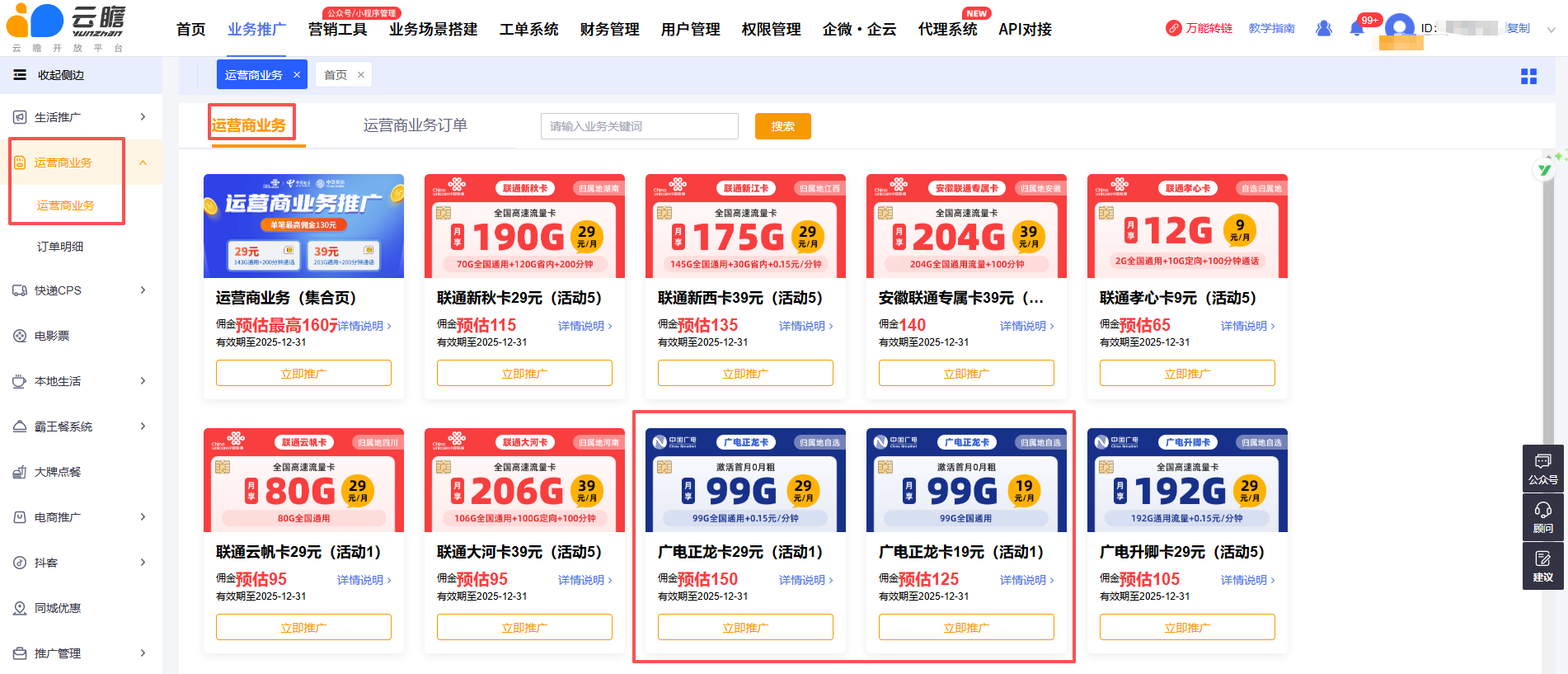 1⃣【广电正龙卡29元】99G