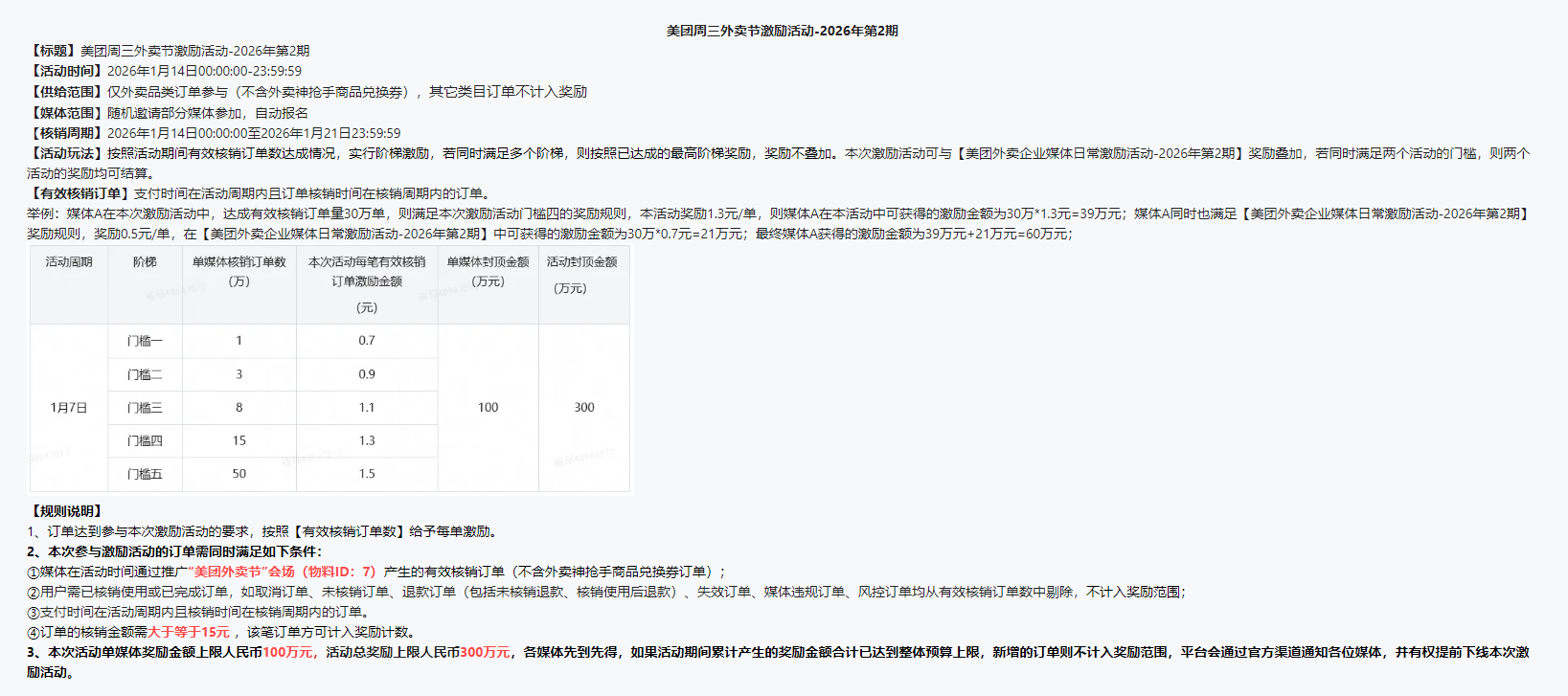 1.美团外卖节会场有效核销订单金额≥15元计入激励;