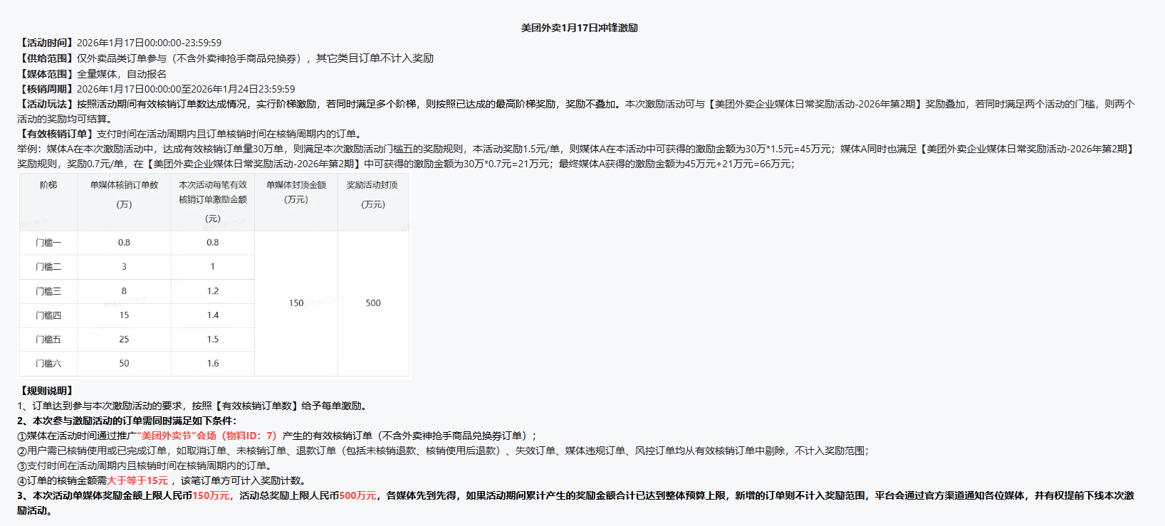 1.美团外卖节会场有效核销订单金额≥15元计入激励;