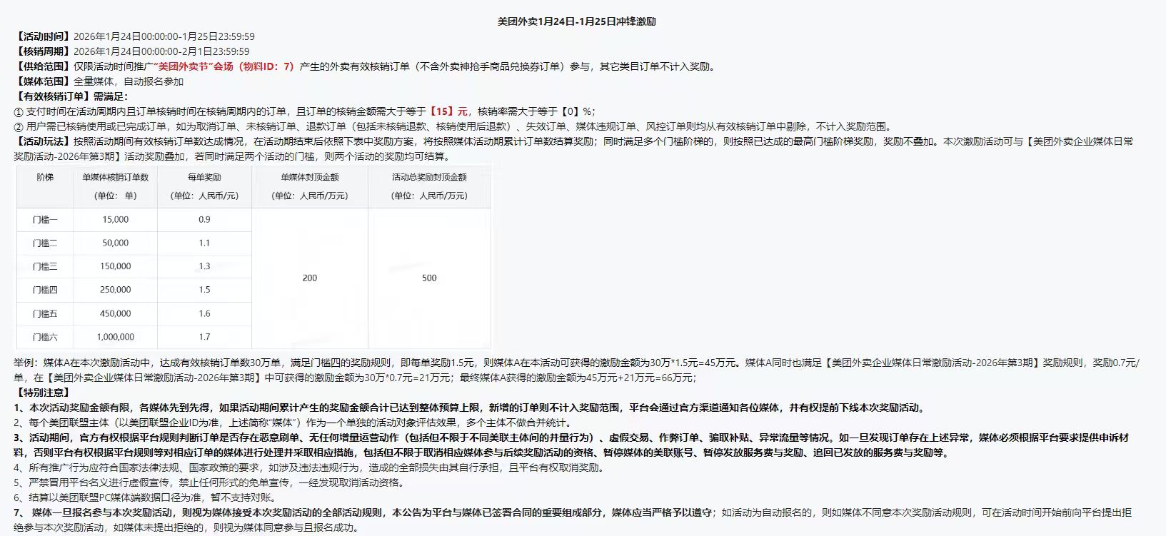 1.美团外卖节会场有效核销订单金额≥15元计入激励;