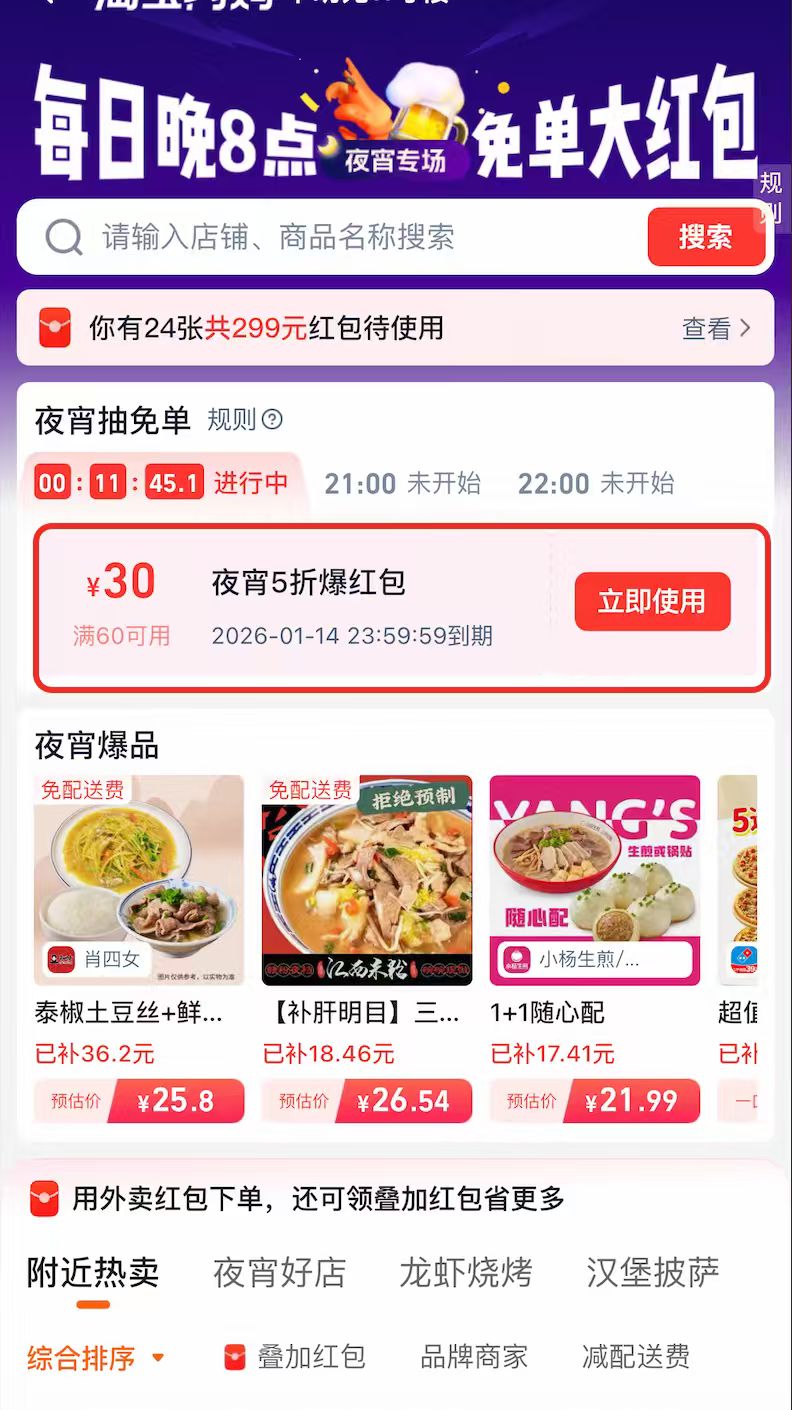 👉抢到18-18可抽夜宵专属 5折大红包 88-44,60-30,46-23,36-18🧧