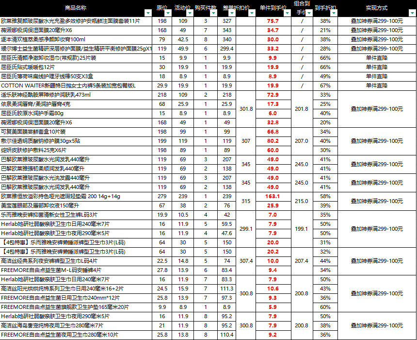 • 屈臣氏神券129-30/199-60/299-100可叠加299-100商品券,最高299-160/399-200