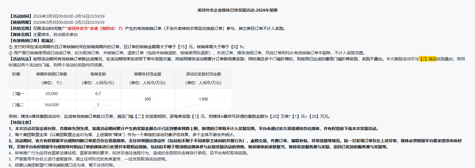 1.美团外卖节会场有效核销订单金额≥15元计入激励;