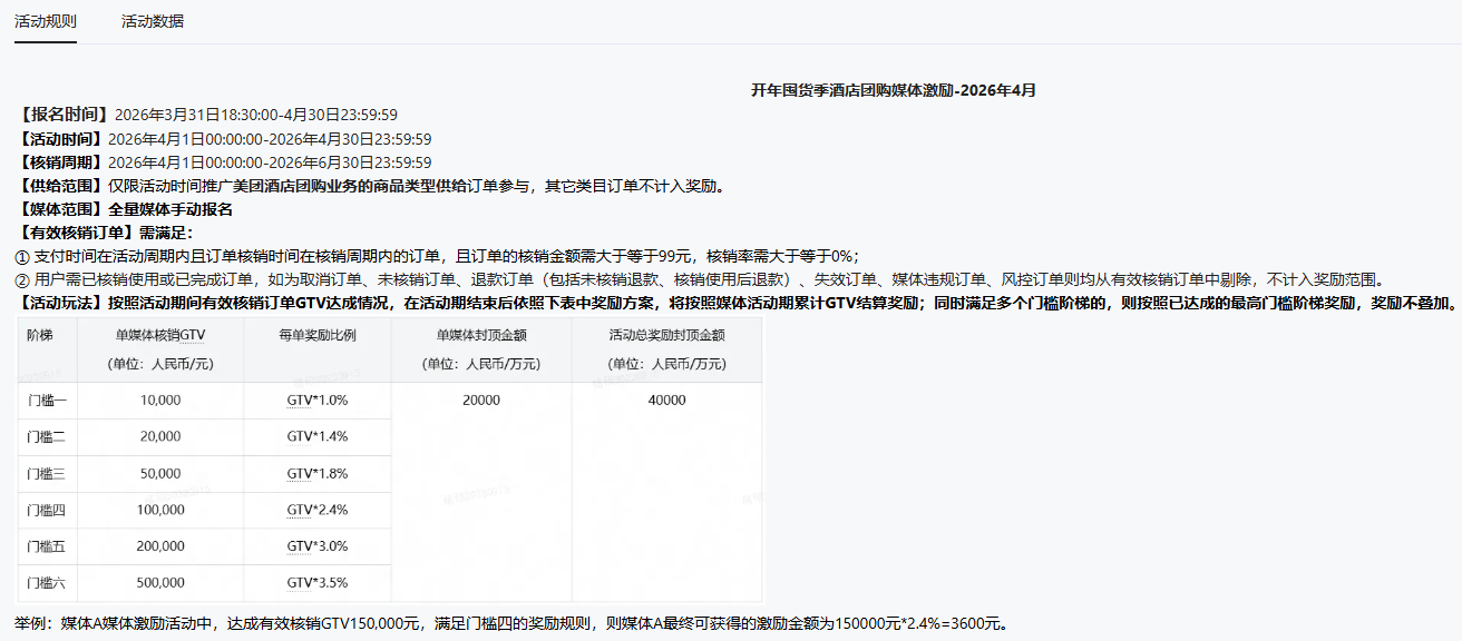 门槛2:有效核销GTV 20,000,每单激励GTV*1.4%;