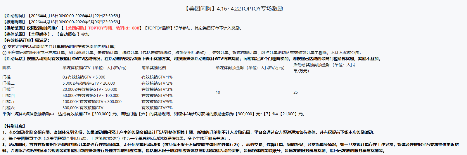 门槛6:300,000≤核销GTV,核销GTV*7%