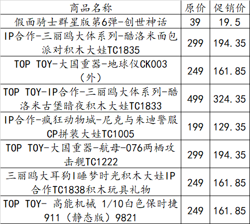 🎉利益点:领TOP TOY专属商家券 99-10/159-25/199-35