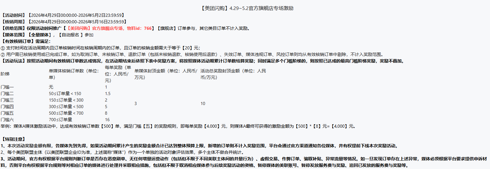 2.用户需已核销使用或已完成订单,如为取消订单、未核销订单、退款订单(包括未核销退款、核销使用后退款)、失效订单、媒体违规订单、风控订单则均从有限核销订单中剔除,不计入奖励范围。